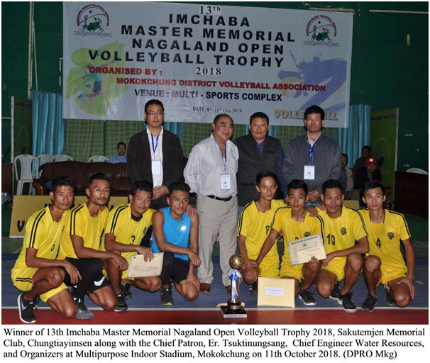 Mokokchung, 12 October: Thusday deh 13th Imchaba Master Memorial Nagaland Open Volleyball Trophy laga final toh Multi-purpose Indoor stadium, Mokokchung deh khelise. Mokokchung District Volleyball Association (MDVA) pora tournament ola deh Sakutemjen Memorial Club, Chungtiayimsen pora Changtongya Volleyball Association logode haraide kena Trophy toh lobule parise. Etu pora tai khan jeta toh second par wala hoise. Third aro fourth jaga toh Sporting Club, Koralong aro Lakhuni Sporting Club pora loise. Closing function toh Er. Tsuktinungsang, Chief Engineer Dept. of Water Resources pora grace korise. Closing function deh Patron pora volleyball khel laga katha kotha janaideya thakise. Tai pora game toh YMCA Physical Education Director, William G. Morgan pora 1895 sal deh suru kora ase, etu bechide Olympic event hoise aro etya universal sport event hoise. Etu agae function time deh, Lakhi Longkumer, President MDVA pora vote of thakise janaideya thakise aro Talipokum pora special song gaa thakise. Function laga Patron pora Trophy aro individual award toh jeta khan ke deya thakise. Individual jeta khan toh, Man of the Tournament toh Sakutemjen Memorial Club Chungtiayimsen laga Tongpangsunep pora jetise. Best Setter toh Sakutemjen Memorial Club Chungtiayimsen laga Imsuwar pora jetise. Aro Best Spiker toh Changtongya Volleyball Association laga Imkongsanen pora jetise.