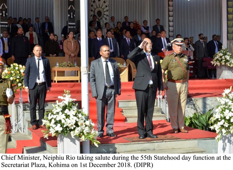 Kohima, 01 December: Saturday din Secretariat Plaza, Kohima jaga deh Nagaland laga 55th statehood day toh phal pora manaise. Event time deh Chief Minister of Nagaland, Neiphiu toh Nagaland nemide dukh kora baba khan ke jaat kori kena kushi powah kotha janaideya thakise. Jaija Nagas laga kahani tai pora kowah toh, British pora Naga Hills district toh 1866 sal headquarters logode Samaguting jaga deh bonaise, aji kali etu jaga toh Chumukedima ase. 1876 sal headquarter toh Wokha jaga deh shift kora thakise aro last deh headquarters toh 1876 sal Kohima jaga deh shift howah laga ase. 1918 sal Naga Club bona thakisea aro Simon Commission logode memorandum toh 10th January 1929 deh potha (send) thakise. Etu memorandum toh, British India pora constitutional reforms plan korikena thaga pora alag hoijabo koikena demand kora laga ase. Government of India aro Naga People’s Convention majode 16 Point agreement of 1960 signed kora pora political issue phal koribole first kosish korise. Nagaland laga interim body toh Governor of Assam, General Shrinagesh pora 18th February 1961 deh inaugurate kora ase. 28th August 1962 deh, constitution 13th Amendment act 1962 toh parliament pora passed kora thakise aro president pora Nagaland bill 1962 toh 4th September 1962 deh mana thakise. Etu pora Nagaland toh Indian union laga 16th state howah thakise. 1st December 1963 deh, India laga President Dr. S. Radhakrishnan pora Nagaland toh Indian Union laga 16th State inaugurate kora thakise. Even din deh Chef Minister pora founding father logode respect dese aro biswas kori ase aro prathna kori ase, tai khan laga vision, principles, sacrifices aro hard work pora ahhibole din time deh be ami khan logode rasta dekhai kena agae jai thakibo karni. Statehood bechide, naga groups aro armed forces majode chamala hoi thaga pora besi manu mora thakise koikena Rio pora janaideya thakise. Government of India pora be naga laga unique history deh jana thakise aro etu culture deh political settlement lagi thakise. Rio pora be, ami khan laga society nemide peace talk kori thaga sob Naga National Political Groups (NNPGs) aro tusara khan logode kushi powah kotha janaideya thakise. 11th May 2018 deh, Political Affairs Committee (PAC) logode PDA legislators toh naga tribal Hohos aro civil society organisations logode join howah thakise. Aro etu solution deh paribo karni sob Naga political groups logode peace talks deh join hobole janaideya thakise. People’s Democratic Alliance (PDA) government toh kotha pora agreement korikena Indo Naga Political issue toh joldi thek koribole kori ase. Rio pora health sector deh kowah toh, Friday deh Nagaland pora measles Rubella Vaccination Campaign lowah toh 97.5% par hoi kena kothom hoise. Etu par he ami khan laga state pora 11th Global Agriculture Leadership Award 2018 laga besi Horticulture state award paise. Etu toh state laga horticultural activities deh notun idea jolai kena puti kora pora powah laga ase. Law and order situation deh, ami khan laga state toh law and order deh phal thek pora rakha karni India Today Conclave of state deh best state award paikena ase. State pora be state laga investment othabo karni Investment and Development Authority of Nagaland (IDAN) olaise. Etu par 15th Finance Commission toh ami khan laga state deh ahha thakise aro ektum phal pora host kora thakise. Parade deh sob melikena seven contingents hesha lowah thakise. Nagaland police pora ektum sundor aro phal Drill toh 9 IR Mahilla Bn aro Weapons Handling pora kora thakise. Etu bechide Para Motor, Corporal, Vishal Kumar pora petal droping aro Indian Air Force pora sky diving kora thakise. Seventeen tribes pora tai khan laga unique cultural performances kora thakise. Cantamus Choir pora “A ra Kezivi” gama toh Baptist High, Bethel Higher Secondary, Northfield aro G. Rio Schools laga student khan logode kora thakise.
