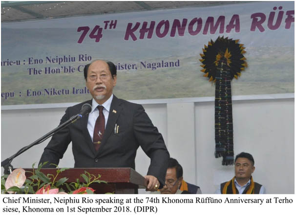 KOHIMA, SEPTEMBER 1 : Khonoma, Terhotsiese te Ist September 2018 te 74th Khonoma Ruffuno Anniversary manaise. Etu ke Chief Minister Neiphiu Rio toh Special Guest nemite ahese aro tai pora etu din toh suru kuridese koise.