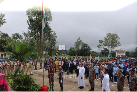 Kohima, 14 August 2025: Har Ghar Tiranga laga part hisap te, 78 Bn. CRPF khan flag hoisting ceremony arrange kori dise Don Bosco School, Sechu-Zubza, Kohima te, 13th August 2025 te. Devnath Somkunwar, Commandant 78 Bn., Tricolour hoist kori dise, Principal, teacher aru student khan laga presence te. Student khan excited hoi kena etu ceremony witness korise. Student khan folk dance aru patriotic song bhi present korise. Student khan ke ekta National flag, kunba sports item aru mithai bhi diya hoise.