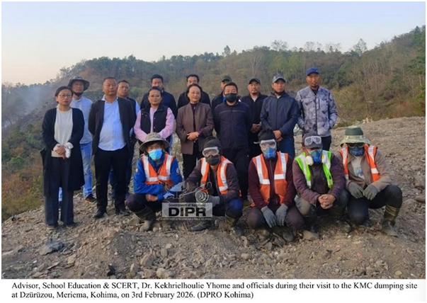 February 04, 2026, 7:24 PM: School Education and the State Council of Educational Research & Training (SCERT)laga Advisor – Dr. KekhrielhoulieYhome, kuntohhoileypoilaitu KMC dumping site tohsaboleylagakaamnimitey responsibility resume kurishey, Dzürüzou, Meriema, Kohimatey, SBM (U)-2.0, Dumpsite Remediation Acceleration Programme (DRAP) under tey, legacy waste remediation nimitey, tai para itu jaga tey visit kurishey, 3rd February 2026 tey, ituMission Director, SBM (Urban) Kezhochole RhetsoaruituKohima Municipal Council (KMC)laga official khan logotey.