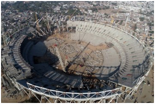 The Hindu deh khobor janaideya hesab deh, stadium toh 63 acres mathi loikena bonabole ase aro etu toh renowned architect firm M/s. Populous para design korise. Etu project deh Rs 700 crore estimate korise aro construction tender toh L&T logode dese. Stadium pethor deh infrastructure toh three practice grounds aro indoor cricket academy melikena ase.