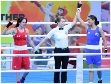AIBA Women’s World Championships: Manisha Moun jitishe Christina Cruz logote
