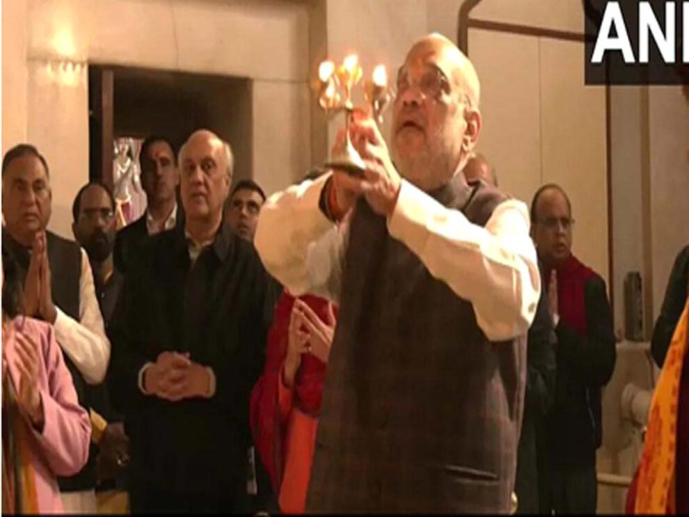 New Delhi, January 22,2024: Union Home Minister Amit Shah para Monday dhe Shri Laxmi laka Narayan Mandir dhe koto Birla Mandir laka nam dhe jani ase National capital dhe tade tai pratna kurishae Pran Pratishtha laka occasion laka nam dhe koto Ram Mandir Ayodhya dhe.