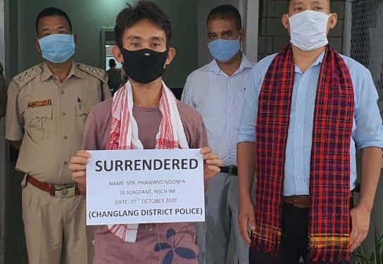 October 08,2020: Arunachal Pradesh’s Changlang district October 5 te ekta Phawang Ngonpa ekta self styled sergent NSCN(IM) laga Namtok police station te surrender kurishe.