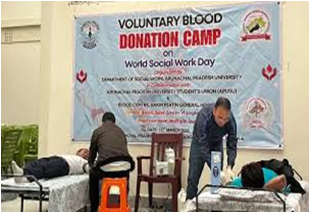 Pasighat, March 18, 2026: Yete Social kaam kurea laga Department, Arunachal Pradesh University (APU) khan para. Voluntary khun donate kurea laga camp toh organised kurishe koishe. Etu toh World Social Work Day din te. Etu toh Tuesday din te thakhishe. Yete APU Students Union aru The Centre of Bakin Pertin General Hosiptal (BPGH) khan logote mili kina. Etu toh East Siang District te thakhishe. Yete camp kurea homoi te. 25 Khun Units toh jama kuribole parishe koishe.