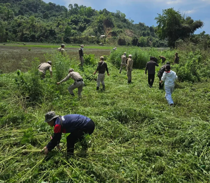 Lemmi, April 10, 2026: Wednesday din te. Police, Forest laga Officials aru Local manu khan mili kina. Ganja laga ghas khan bia kurishe koishe. Etu toh 20,000 Square metres nishina te. Etu toh Pakke Kessang District te ase.