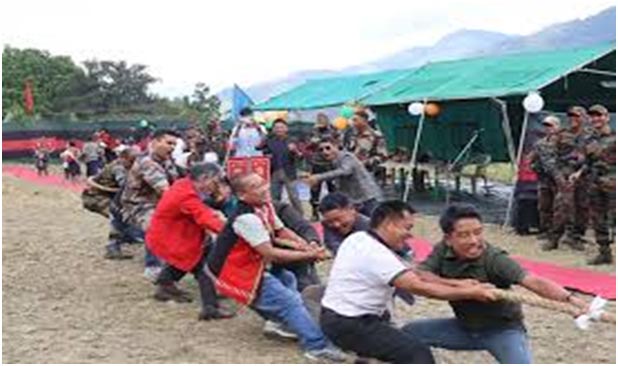 Khonsa, November 13, 2025: Tuesday din te. Khonsa Battalion laga Assam Rifles khan para sports laga saman khan dishe koishe. Youth aru Local teams khan ke. Yete Footbaal, Volleyball aru Badminton laga saman khan. Yete toh Horu Chinhan Bosti te Programme loa homoi te.