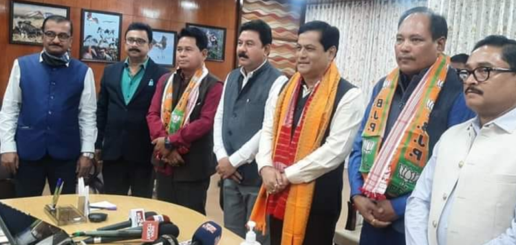 Etu duita BPF leaders toh saffron party te Assam chief minister Sarbananda Sonowal’s official residence Guwahati te shaamil hoishe senior BJP leaders khan laga samne etu te party president Ranjeet Kr Das bi thakishe.