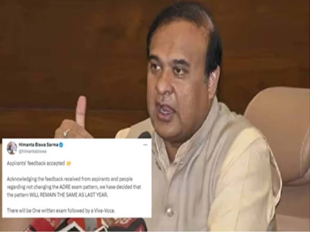 Assam, 13 July : Assam Chief Minister Himanta Biswa Sarma para announce kurishey ki state government para Assam Direct Recruitment Examination (ADRE) karney itia thakia pattern ke maintain kuriboley faisla kurishey.