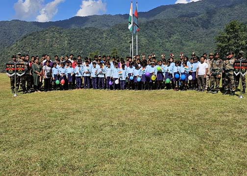 October 24, 2023 :  Assam Rifles para ekta visit organised kurishey, school students laga, itu ‘A Day eith Company Commander’ lag theme under tey, Choklangan Bosti tey, Noklak District tey, Nagaland State laga, 23rd October, 2023 tey.  Tatey pura puri 50 students khan aru charta (4) teachers khan ahishey koi asey, Choklangan School laga, kun khan toh hoiley tai khan laga din itu company commander logotey spent kurishey. Outdoor visit laga activities khan – Flag Hoist kuria laga nishina, Tug of War, Chess, Carrom Board aru Catapult Hunting skill games khan nishina  khan toh hoiley organised kurishey koi asey. Itu jawan laga khun khan ke toh hoiley, jeevan aru career laga insight bhi dishey koi asey, armed forces khan tey, Assam Rifles laga, motivational video laga screening kuri kena. Teachers aru students khan apra active para participate kurishey koishey, itu sob activities khan tey aru tai khan laga sincere gratitude express kurishey, itu Assam Rifles khan ke, itu ekta memorable event organise kuria nimitey, far flung area khan tey, Nagaland state laga Noklak district tey.
