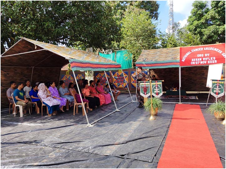 November 08, 2025 : Assam Rifles para ekta Cancer Awareness Lecture organize kurishey, itu National Cancer Awareness Day laga occasion tey, Dimapur District, Nagaland tey, 07 November, 2025 tey. Tatey pura puri 35 civilian khan thakishey maiki aru elderly member khan, itu community laga attend kurishey, itu awareness programme tey. Itu lecture toh hoiley itu local manu khan ke educate kuriboley karney aim kuria laga thakishey, agey para detect kuriboley, preventive care thakiboley aru healthy lifestyle practice khan hoboley, kuntu toh hoiley significant para cancer hoboley laga risk ke komti kuri dibo. Itu resource person para common sign khan, thik homoi tey medical checkup khan laga importance, tobacco, nishina pani para hoa harmful effect khan, aru nutritious diet aru exercise laga benefit khan opor tey highlight kurishey.