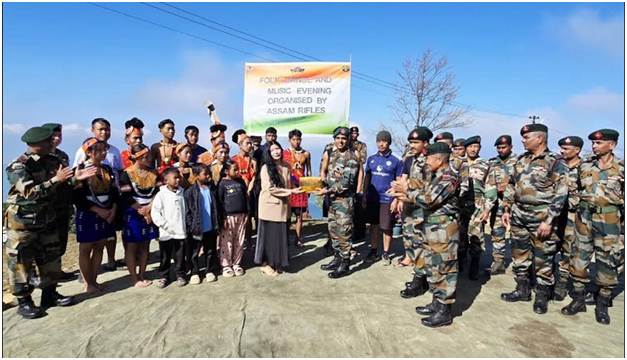 December 06, 2025, 07:14 PM: Assam Rifles para ekta vibrant Folk Dance aru Music Evening organize kurishey, Wakching town laga local khan logotey, 6th December, 2025 tey. Itu event tohhoiley local culture promote kuriboley, indigenous tradition khan preservekuriboleyaruitu community aru force majetey bond majbutkuriboley aim kurialagathakishey.
