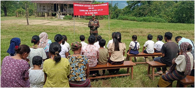 August 19, 2025, 07:03 PM: World Humanitarian Day laga celebration tey, Assam Rifles para ekta awareness lecture organize kurishey, health aru hygiene opor tey, 19th August, 2025 tey para, Hedman bosti aru Khimyong bosti tey, tai khan laga commitment reaffirm kuri kena, healthy jeevan aru saaf safai development karney commit kuri kena, itu society tey. Itu event tey enthusiastic participant khan thaka laga witness kurishey, itu local manu khan para, tatey Goan Bura khan, Gram Panchayat member khan aru school laga bacha khan bhi thakishey koishey. Lecture toh hoiley, alag alag tarika khan opor tey deliver kuria laga thakishey, itu health aru hygiene laga maintenance promote kuriboley, itu jaga tey.