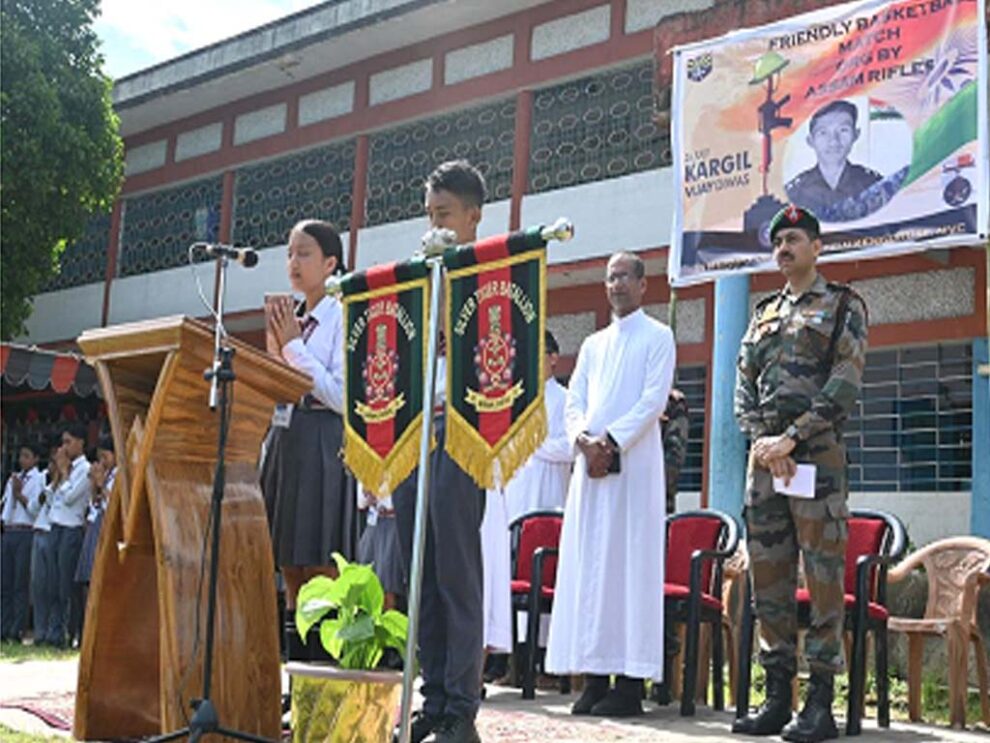 July 30, 2024: Assam Rifles para toh hoiley ekta solemn aru inspire kuria laga event loishey, 2th July, 2024 tey, Kargil Vijay Diwas commemorate kuriboley, St Xavier’s School, Jalukie tey, tai khan laga esteem thaka alumnus Captain(Late) N Kengruise, MVC laga honour tey, kun para tai laga life sacrifice kurishey, itu nation nimitey, itu Kargil War laga homoi tey. Itu event tey toh hoiley student khan, faculty khan aru Assam Rifles laga ekta team para attend kurishey. Itu din toh hoiley ekta wreath lay kuria laga ceremony para shuru kurishey, Capt(Late) N Kenguruse, MVC nimitey, aru itu pichetey prathana aru ekta ek minute nimitey silence maintain kurishey, itu sob braveheart khan ke tribute diboley, kun khan para tai-khan laga jeevan toh di dishey service tey thaka homoi tey, moi khan laga nation nimitey. Itu school laga assembly ground toh hoiley patriotic fervor para bhorta thakishey, National Anthem ganna gawa homoi tey, aru ekta series laga student khan para tai khan laga gratitude express kurishey, moi khan laga nation laga brave heart khan nimitey. Itu event toh hoiley ekta special tribute bhi feature kurishey, itu Assam Rifles laga Pipe Band para, kun khan ara patriotic aru inspirational tune khan play kurishey, itu breaveheart khan ke yaad kuri kena, kun khan para supreme sacrifice kurishey, Kargil tey fight kuri kena.