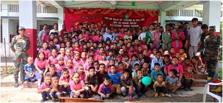 September 07, 2024: Assam Rifles para Teachers’ Day celebrate kurishey, 5th September 2024 tey, lecture khan aru cultural programme khan organize kurikena, MotherTeresa School, Kharsangaru Mahabodhi School, Inaoduitateybhi, kuntutohhoileyChanglang district tey located asey, Arunachal Pradesh laga. Itu event tohhoiley teacher khan laga invaluable role khan playkurialaga emphasize kurishey, jawan chukrachukri khan karneyaruekta responsible society build kuriatey. Mother Teresa School, Kharsangtey, itu celebration teytoh hoiley student khan para live performance khan feature kurishey, dance khan skit khan aru solo ganna khan sob toh tai khan laga teacher khan kehonourkuriboley dedicate kurikena. Itu event tohhoiley deep respect aru gratitude highlight kurishey, student khan para tai khan laga educator khan nimiteyrakhatoh. Itu school laga principal, faculty member khan aru 390 student khan para itu celebration khan tey participate kurishey, ekta memorable atmosphere banaikena, pride aru appreciation para bhortathakikena. Mahabodhi School, Inaoteyekta lecture deliver kurishey, educator khan para role playkuriaoportey focus kurikena, itu student khan laga holistic development kuriatey, khali academic para hey nahoi, hoilebi wisdom aruresponsibility bhi foster kurikena. Itu event tohhoiley 34 teacher khan para attend kurisheyaruekta 710 enthusiastic student khan para attend kurishey, sob toh active para participate kurikena, itu teach kuria community nimiteydangor respect aru admiration dikhaikena.
