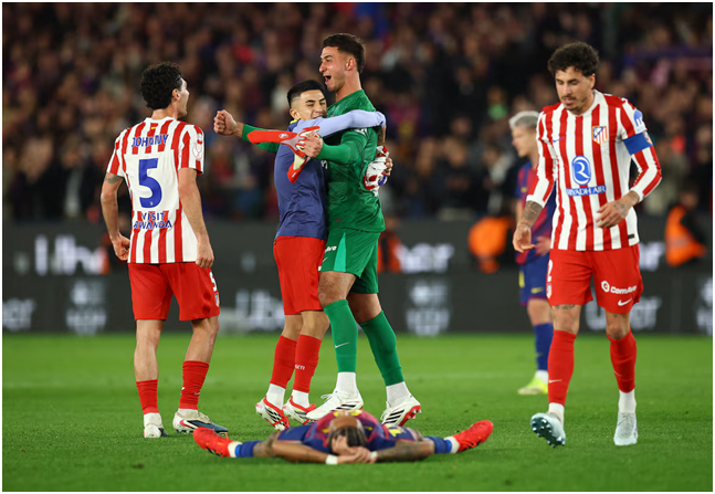 Raphinha penalty left side te mari dise, ketiya goalkeeper Juan Musso ulta dike dive korise. Break pora Musso bhal save kori Atletico ke match te rakhi dise – 54th minute te Pedri laga shot one-hand te save korise, Bernal aru Yamal laga effort bhi rokise.
