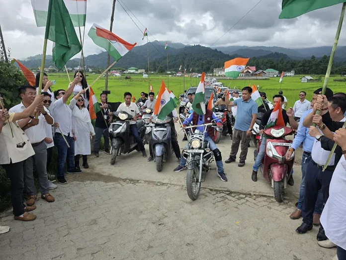 Itanagar, August 13, 2025: Tuesday din te. State Bharatiya Janata Party (BJP) Khan para Tiranga Yatra Bike Rally toh kurishe koishe. Arunachal Pradesh laga pura State te thakhishe koishe.Yete Nation karne Supreme Sacrifice kurea khan laga Family ghor te ahishe koishe. Yete Country laga heroes khan ke patriotism aru Honour toh Celebrate kurishe koishe.