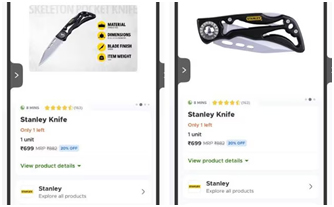 Investigation time te duita separate murder te West Delhi te, Police pra jani paishey ki chaku duita crimes te b chula BlinkIt te kini shey. Police pra etu hoi kina customers nishina posed kuri shey aro same chaku kini shey platform pra. Government regulations hisap te, khali chaku blades 7.62 cm length aro 1.72 cm width te bikabo pareh online te.