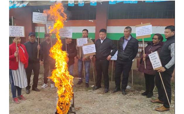 Kohima, 12 December: Lok Sabha deh Citizenship (Amendment) Bill 2019 laga passage ke kelaaf korikena Nagaland Pradesh Youth Congress (NPYC) para Thursday din Union Home Minister, Amit Shah outside Congress Bhavan laga putla jolaise. Najolaideya agae deh All India Youth Congress (AIYC) secretary i/c Nagaland, Sarifa Rahman koise, CAB para Constitution laga preamble beya korise kelay koile etu toh religious deh based thaga nemide.