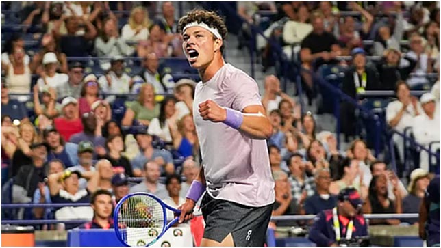 Toronto, 7 August : Taylor Fritz 2024 finalist Andrey Rublev ke kothin fight te haraise, aru Ben Shelton bhi Alex de Minaur ke harai loi American vs American ekta semifinal fix kurise Canadian Open te.