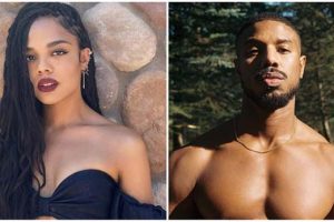 Los Angeles: December 30, 2020. Actor Tessa Thompson para janaishe ke tai laga sports drama film series Creed te co-star Michael B Jordan para third...