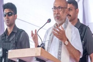 Imphal, April 05 : Inner Manipur Lok Sabha seat laga Independent candidate, Moirangthem T Nongshaba para Manipur Chief Minister N Biren Singh ke moraidibole...