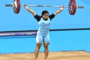 Thailand, 3 April : Commonwealth Games medallist weightlifter Bindyrani Devi para IWF World Cup dey mahila laga 55kg event dey bronze medal jitishey tuesday...