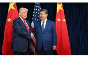 China, 31 October 2025: US president Donald Trump Chinese leader Xi Jinping lokot meeting pra bombastic optimism pra full bahar olai shey. Tai pra ‘great...