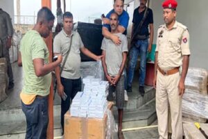 Assam, August 1: Assam Police Special Task Force (STF) team, led by Additional SP (STF) Kalyan Kumar Pathak para 22,000 boxes laga foreign cigarettes seize...
