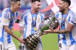America, 15 July : Bishi pak ‘GOAT’ kuina janina, Lionel Messi para tai third consecutive international trophy luishey kitia Argentina...