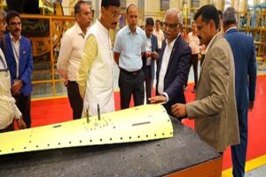 July 16, 2024: Raksha Rajya Mantri Shri Sanjay Seth para itu Hindustan Aeronautics Limited (HAL) aru BEML Limited laga facility khan visit kurishey, Bengaluru...