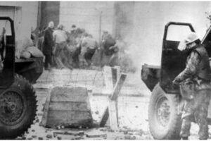 London, 15 September 2025: Ghor manu victims aro survivors laka 1972 Bloody Sunday laka, kute British soldiers khan goli mari shey aro 13 unarmed civil rights...