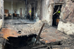 Ukraine, 10 September 2025: Ukraine kan pra reporters khan ke missile laka fragments dikhai shey koishey taikhan key government building ke mari dishey Kyiv te...