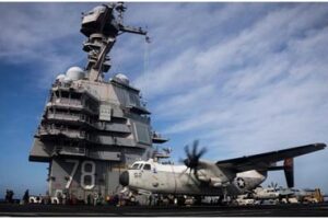 United State, 12 November 2025: Ekta US naval strike force duniya laka sopse dangor warship around te centred hoishey, USS Gerald R Ford, Caribbean te punchi...