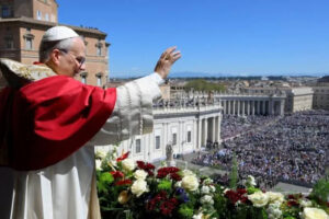 Vatican, 6 April 2026: Thousands nishina worshippers khan jama hoishey St Peter laka Square te Sunday din te Pope Leo XIV taila first Easter Mass address...