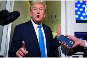 Canada, 26 October 2025: US president Donald Trump pra koishey tai tariffs uthai d ase saman opor te Canada pra import kura Ontario laka province pra anti...