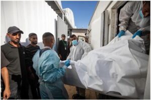 Gaza, 16 October 2025: Gaza’s ministry of Health pra koishey taikhan 45 Palestinians laka remains paishey kun ke Israel custody te rakhi kina thaki shey via...