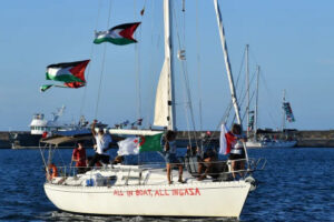 Gaza, 25 September 2025: Spain aro Italy khan naval ship phatai shey Mediterranean sea te, Global Sumud Flotilla (GSF) ke protect kuribo leh charged kuri kina...