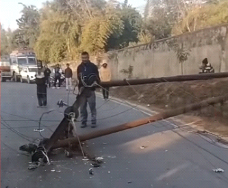 January 25, 2026: Chumoukedima tey, Electric Pole bhangi kena girishey, Nagaland Zoological Park osor tey. Itu 25th Jan tey electric pole gira para, manu laga...