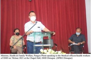 Kohima, June 07: Minister, Health & Family Welfare, Pangyu Phom para District Hospital, Dimapur laga medical officers logote Chapel Hall, DHD jaga te ekta...