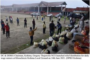 Kohima, 14 June: Kohima district pithor te hotai hajira korikena gama aro motob lakiya families nemite relief distribution toh 14th June 2021 te Khouchiezie...