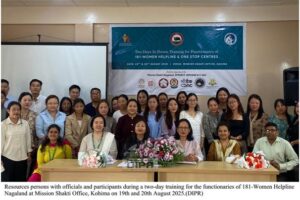 Kohima, Nagaland, 20 August 2025: Two-day in person training 181-Women Helpline Nagaland aru Sakhi-One Stop Centres laka functionaries karone organize kori...