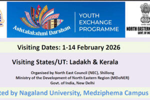 January 30, 2026, 6:11 PM: Itu Ashtalakshmi Darshan Youth Exchange Programme laga part thaki kena, 40 student khan Nagaland University, Medziphema Campus tey...