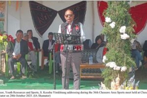 October 29, 2025, 06:33 PM: Youth Resources aru Sports laga Advisor – S. Keoshu Yimkhiung para itu 36th Chessore Area Sports Meet shuru kurishey...