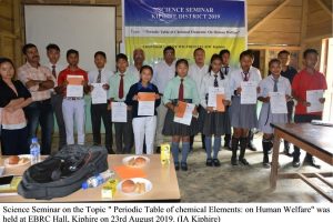 KIPHIRE,AUGUST 27,2019: District Education Office (DEO) Kiphire para EBRC Hall, Kiphire 23rd August 2019 te “periodic table of chemical...