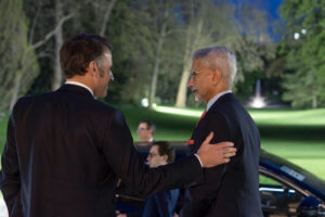 Paris, March 27, 2026: India laga External Affairs Minister S. Jaishankar toh French President Emmanuel Macron ke lok pai she, G7 Foreign Ministers Summit te...