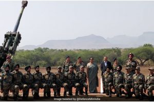 DEOLALI, NOVEMBER 9 : Defence Minister Nirmala Sitharaman pora Friday din 3 jun Major Artillery Gun Systems kan kobi M777 American Ultra Light Howitzers aro K...