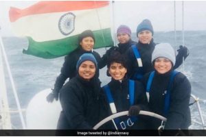 NEW DELHI, SEPTEMBER 18 : INSV laga All-Women Crew kan ekta bhal Award kobi Tenzing Norgay National Adventure Award baise. Kele tai kan pani te 8 moina majutte...
