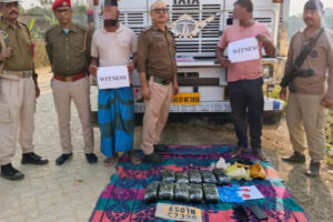 Guwahati, February 15, 2026: Ekta dangor anit-drug operation te, Assam laga police khan para 1,10,000 Yaba tablets pai she, Dholai Police Station laga betor...